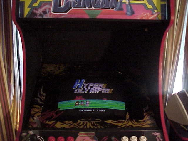 see Hyper Olympic, a horizontal game playing on the 20" monitor.