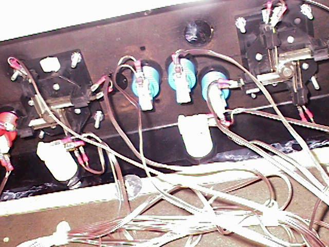 The only thing about the controls that is hard wired is the first set of wires going to the connector boxes.  On the end of those wires are the "U" shaped quick connectors.  The buttons/joystick wires have the "female" type connector.  This took a while to do for every wire, but it was worth it.  The type of wire used was regular speaker wire - it seemed to be the best choice because each button/joystick connection need two contacts.
