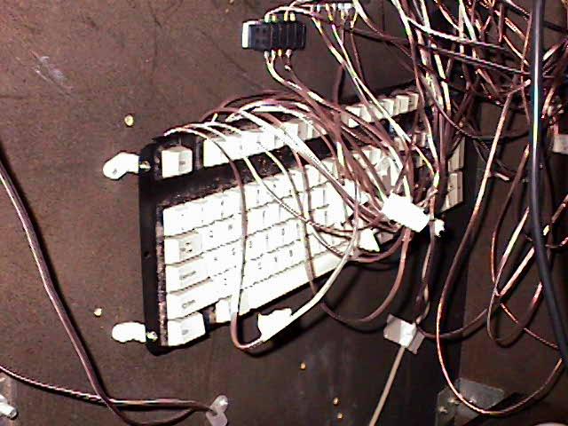 The interface for the controls is an old Dell keyboard.  I just removed the cover and started soldering wires to each of the keys I knew that I needed.  These wires are then connected to "quick connect" terminals which are then connected to the control.  I highly recommend using these terminals because it makes it so much easier if you mess up/want to change your configuration.  Click for a larger view!