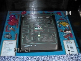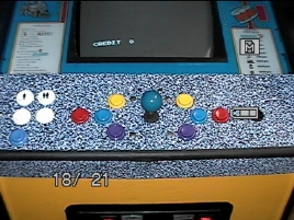 vertical cabinet uses a refurbished monitor from Happ Controls, while the