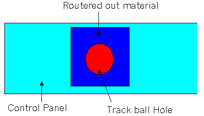 Now Drill two holes about 2 ½ “ from the Center of the trackball hole.