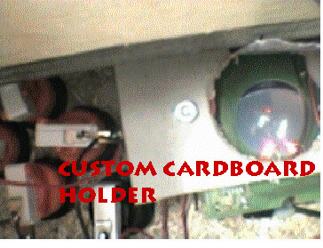 All you need to do now is make the ‘holder’. Get a 1/8” piece of poster board.  You are going to cut a piece about 3” by 4”. Then drill three holes in it. 1 for the trackball, 2 for the carriage bolts.